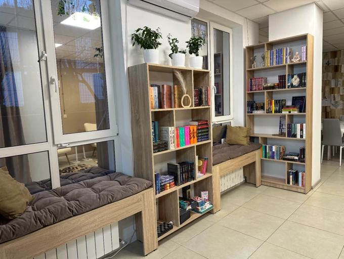 Простір має відкриту бібліотеку та велику залу з 25 посадковими місцями, яка поділена на декілька зон. Також на локації проводитимуть лекції, книжкові клуби та майстер-класи.