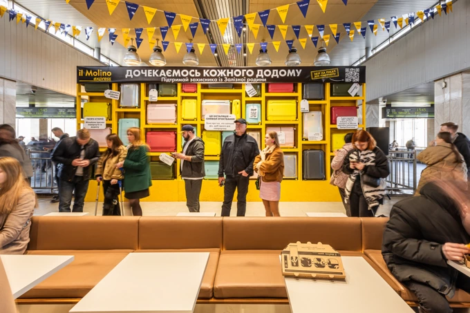 На вході до ресторану розмістили благодійну артінсталяцію з валіз бренду Have A Rest із розповідями про українських захисників. Вона діятиме до 30 березня як фотозона та місце для збору донейтів.
