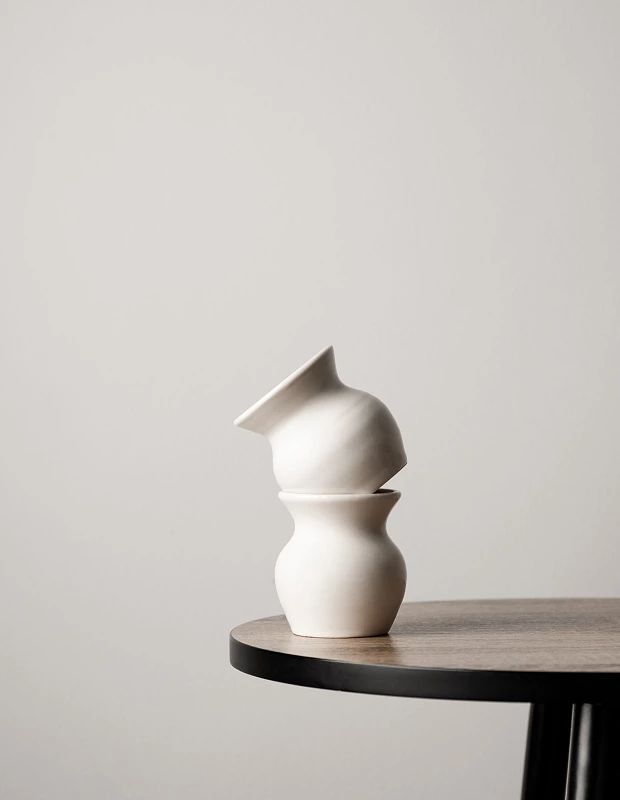 Їх виготовляють вручну в техніці майолікової кераміки, тому двох ідентичних чашок немає, кажуть у команді. Завдяки тюльпаноподібній формі каву зручніше аерувати, а звужений верх зберігає аромат, тому його легше відчути й дослідити смакові дескриптори.