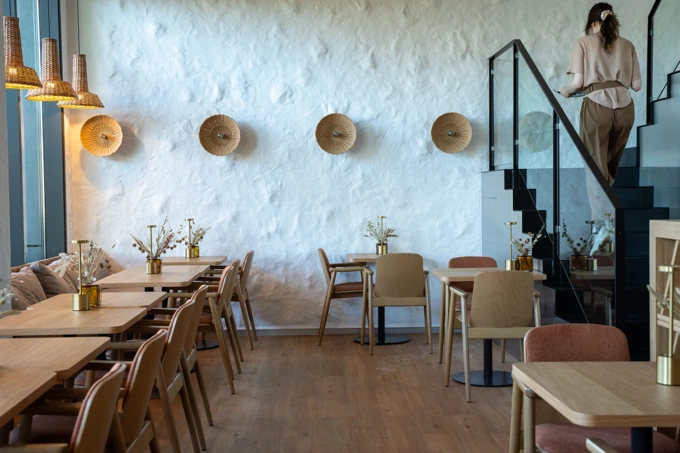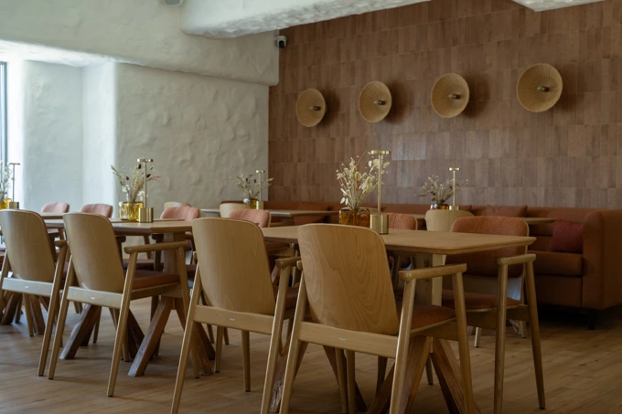 Меблі, декор, форму для персоналу й посуд виготовляли українські майстерні та невеликі крафтові виробники. Окрім основної зали, «Най» має окрему зону для святкувань і приватних подій.
