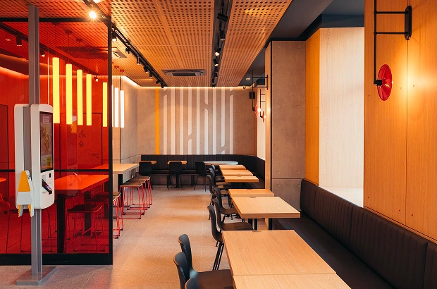 Новий «МакДональдз» площею 500 м² розміщений на першому та підвальному поверхах будівлі. Зробити замовлення в закладі можна щодня із 6:00 до 23:00 за допомогою терміналів самообслуговування в залі або за допомогою функції «Мобільне замовлення».