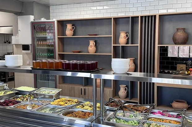 У закладі можна спробувати як класику на кшталт бограча, бендериків і сирників, так і менш відомі страви: білий борщ, шпундру, опішнянську качану кашу й інші регіональні позиції. Тут роблять ставку на швидку подачу, простий формат і ціни нижчі за середні.