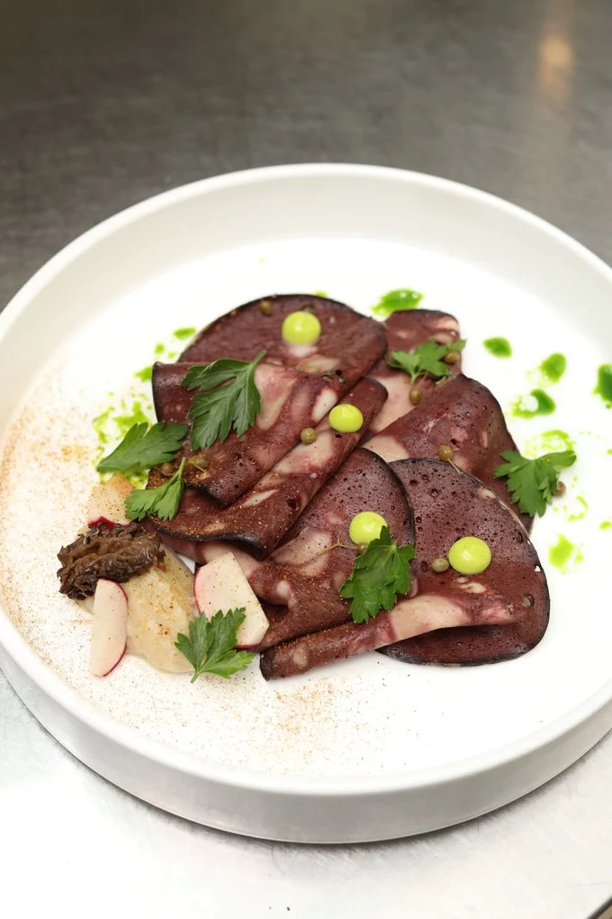 кров’янку із серцем, ферментованою бузиною, ружею, соусом із топінамбура та зморшків;