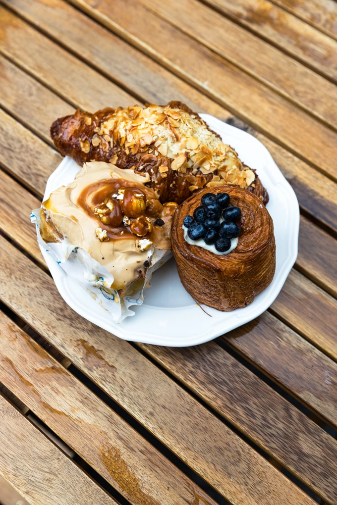 Серед випічки – круасани, канеле, медовий шулик, сінабони, брауні та завитки. Пропонують сінабон «Три молока» з карамельним попкорном (188 гривень), круасан тірамісу-бейліс (188 гривень), брауні з мигдалем і мальдонською сіллю (132 гривні).