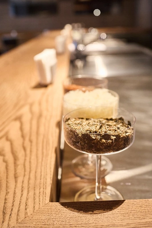 Ще одна важлива частина меню – шашлички в азійському стилі. У «Зірочці» готують п’ять видів маленьких якіторі: з курки, яловичини, свинини, тофу та креветки. Усе глазурують і доводять над вогнем. Частину процесів винесли в барну зону, щоб залишити живий контакт між кухнею й гостями.