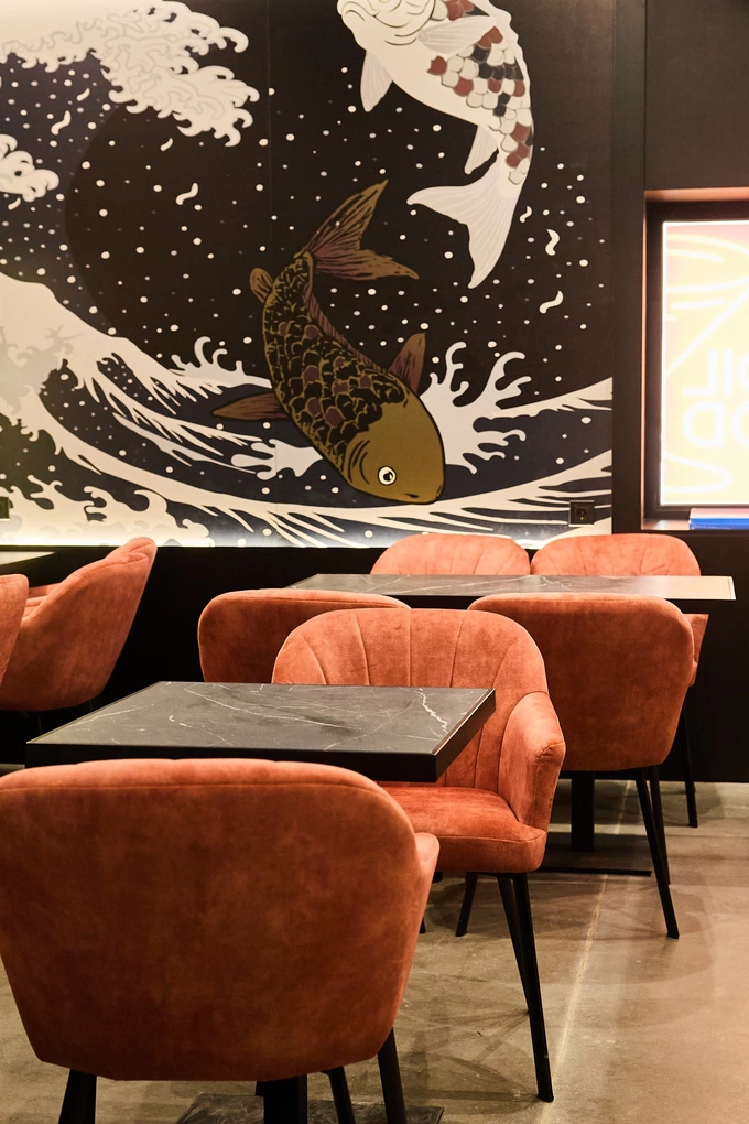 Натомість зосередилися на грузинській кухні із хінкалі, які за рівнем виконання мають конкурувати з топовими закладами міста. Азійський напрям представляє класику: локшину пад-тай, том-ям і роли, серед яких є авторський «Кайсе» без рису. Також є кондитерська вітрина з десертами та випічкою з власної пекарні, що працює безпосередньо на локації.