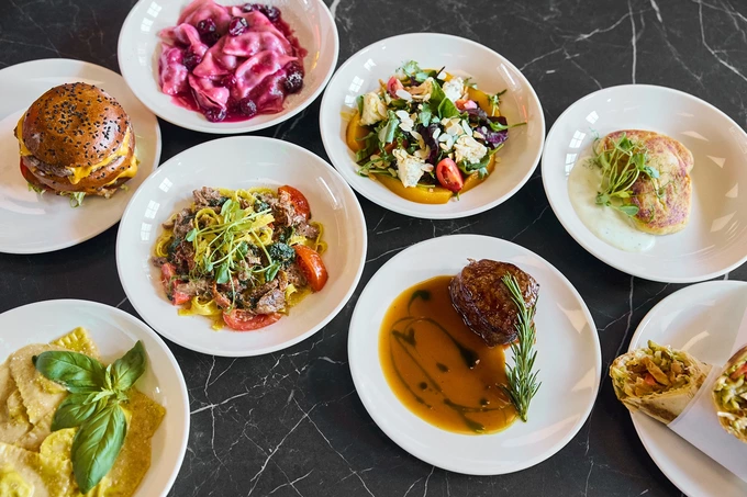 Бренд-шеф Сергій Романчук сформував меню з п’яти напрямів: грузинська, азійська, близькосхідна, американська й італійська кухні. Головний принцип – універсальність: можна замовити великий бургер або взяти кілька мініпозицій із різних кухонь, щоб спробувати все одразу. На локації діє «спільний чек» – за столом можна замовити позиції з усіх корнерів і розрахуватись одним чеком.