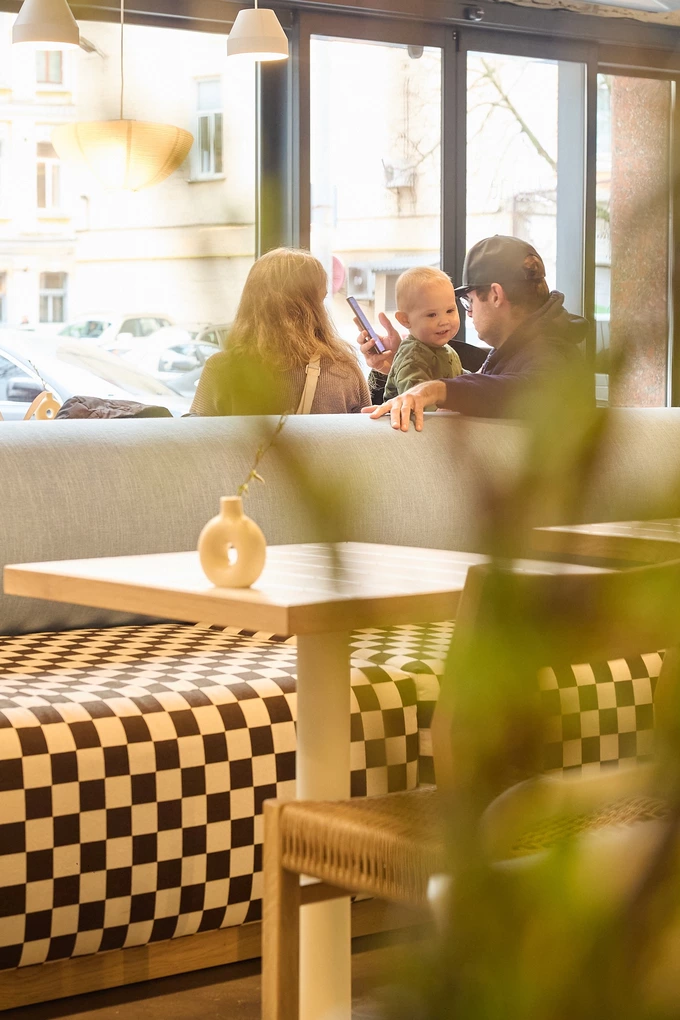 Інтер’єр розробила дизайнерка Надія Чабанна. Роботи тривали три місяці й припали на складний зимовий період із відключеннями світла. «Ми не робили інтер’єр під конкретну аудиторію – робили під себе, під власне візуальне бачення. Хотілося створити місце, де нам самим було би приємно випити кави», – додає керівниця.