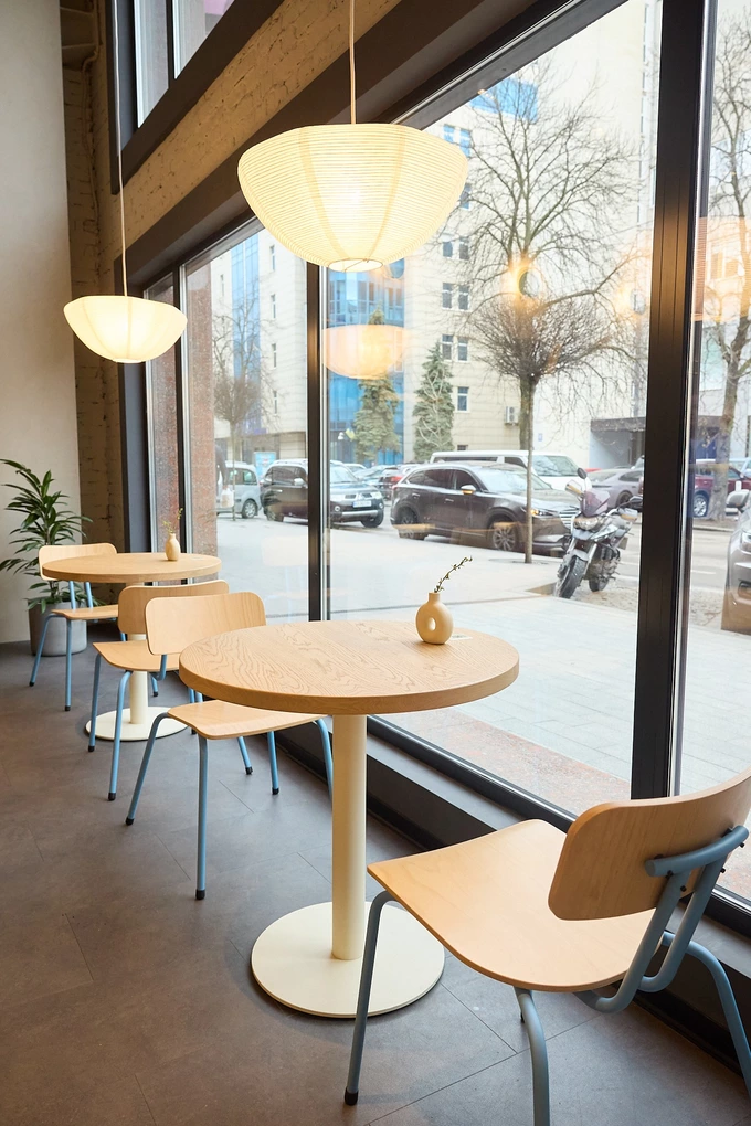 Приміщення на Князів Острозьких обрали через архітектурні параметри: високі стелі та панорамні вікна. Попри близькість до фудмаркету, власники орієнтувалися не на транзитних пішоходів, а на бізнес-аудиторію навколишніх офісів.