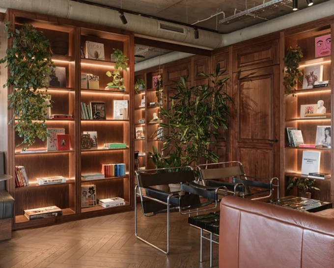 У кафе три окремі зали: музична з аудіосистемою й вінілом, мистецька з роботами сучасних українських художників (наприклад, Павла Макова, Назара Білика, Ніни Мурашкіної, Олексія Кондакова) й бібліотека з рідкісними книгами й артбуками. Дизайн розробила студія S&O.