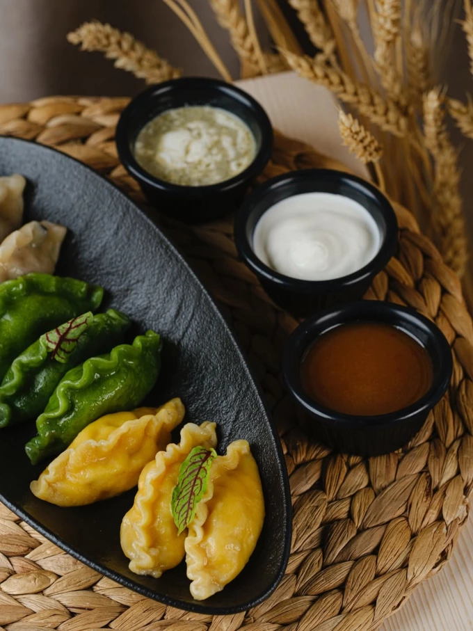вареники з сомом і соусом із насіння соняшника