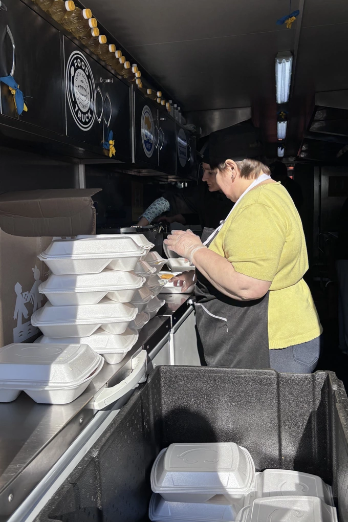 Хоч у лютому-квітні 2022 року обсяги були більшими, бо тоді видавали по 10 000 порцій на добу, – зараз робота кухні стала більш системною. У команді точно знають, як розгорнутися посеред розбитого кварталу й дати людям теплу їжу в найкоротший термін.