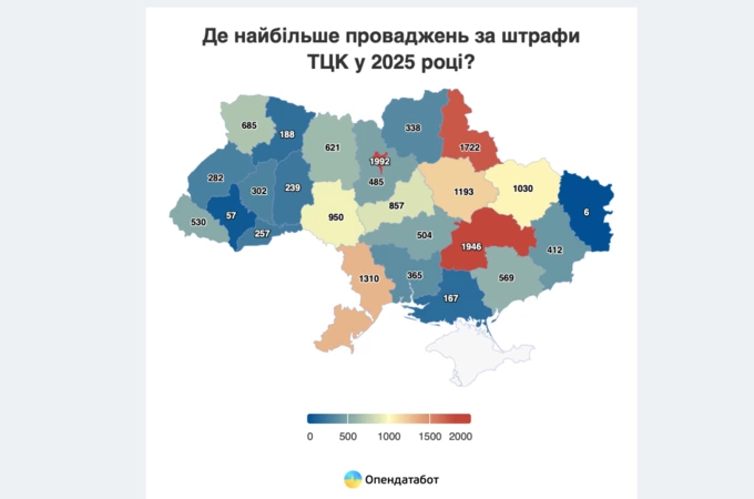 В Україні щомісяця відкривають в середньому по 4,7 тисячі нових штрафів ТЦК, повідомляє «Опендатабот».