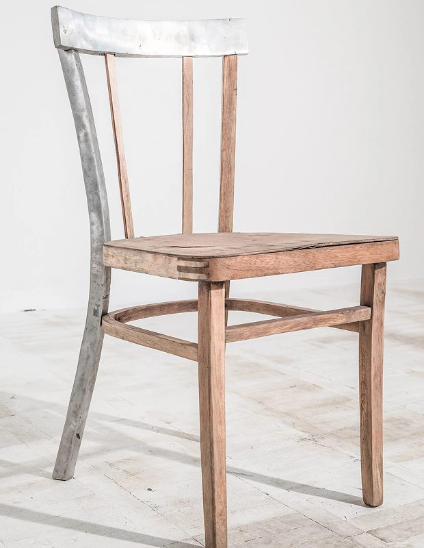 Так художник відновив два стільці, двері та віконні рами, замінивши відсутні частини металом, переплавленим з російських ракет і снарядів. «Метал, який використовували для руйнування цих предметів, тепер допомагає їх відновлювати», – пояснив Анрі.