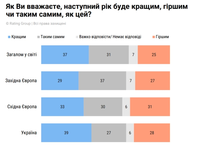 Окрім того, 25% опитуваних по всьому світу думають, що 2026 рік стане гіршим, а 37% припускають, що кращим.