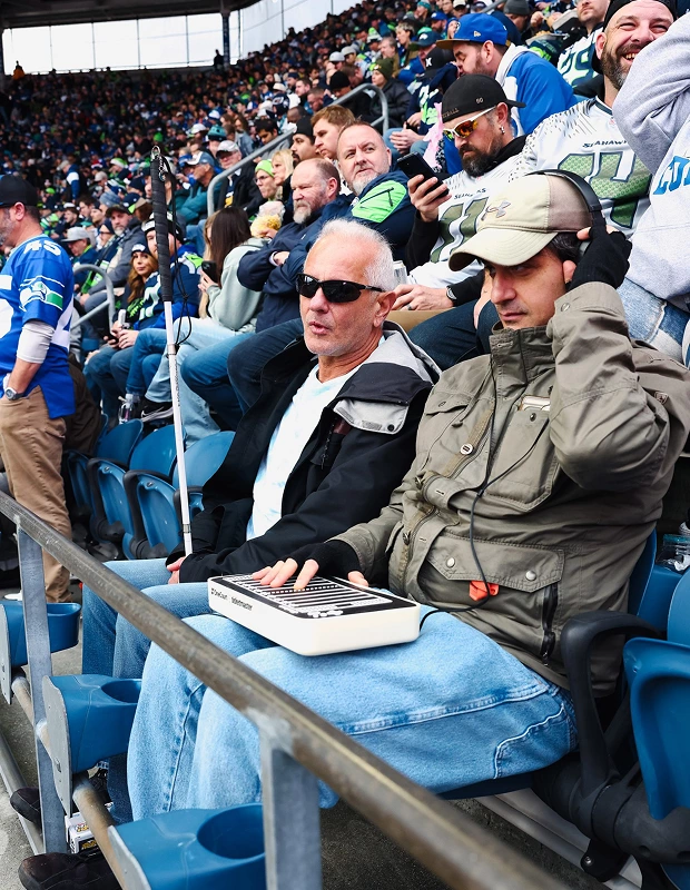 Під час «Супербоулу» на стадіоні Levi’s у Каліфорнії, де 8 лютого «Сіетл Сігокс» гратимуть проти «Нью-Інгленд Петріотс», пристрій зможуть випробувати близько десяти фанатів. Для незрячих людей це альтернатива звичному радіорепортажу.