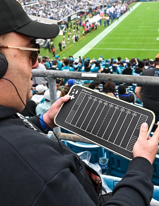 Стартап OneCourt із Сіетла (Вашингтон, США) розробив тактильний планшет, який допомагає незрячим і слабозорим уболівальникам стежити за грою під час «Супербоулу» у 2026 році, пише Dezeen.
