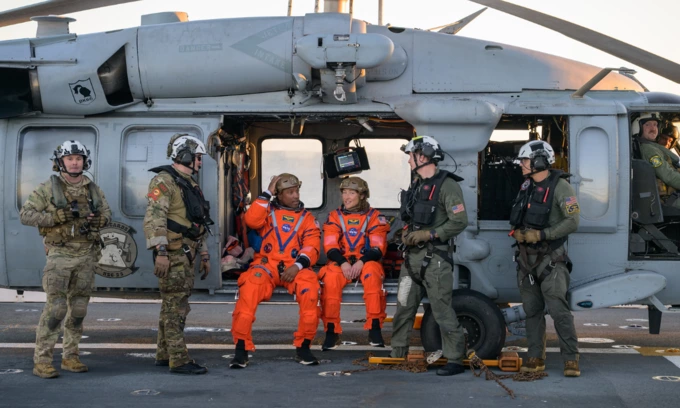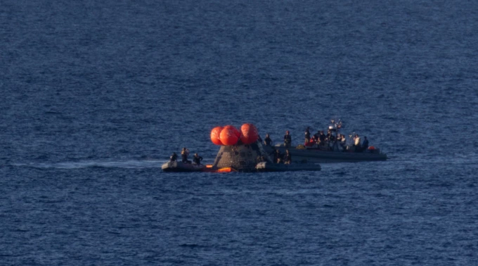 Капсула космічного корабля «Оріон» приземлилася в Тихому океані біля узбережжя Каліфорнії. З надувного плоту, що прикріплений до капсули, астронавтів підняли на борт військові гелікоптери.