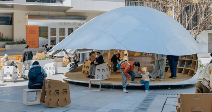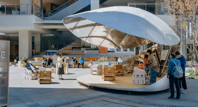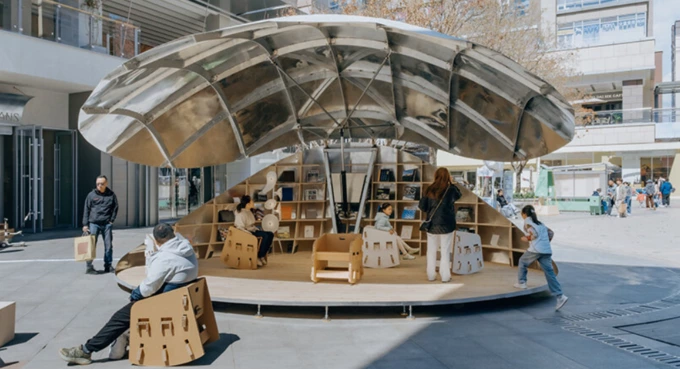 Павільйон під назвою «Книжкова мушля» розробила студія LUO. Він утворює простір для читання, спілкування й відпочинку.