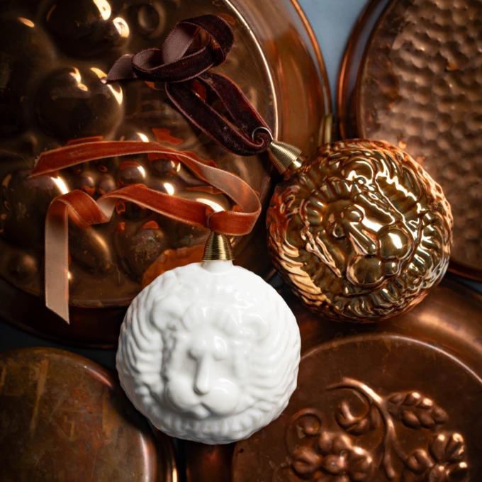 Ялинкова прикраса виготовлена вручну та розписана детальним малюнком лева. Вона є частиною колекції українських ялинкових іграшок і відзначається унікальністю кожного виробу. Прикраса має традиційний дизайн із символікою, притаманною українському стилю.