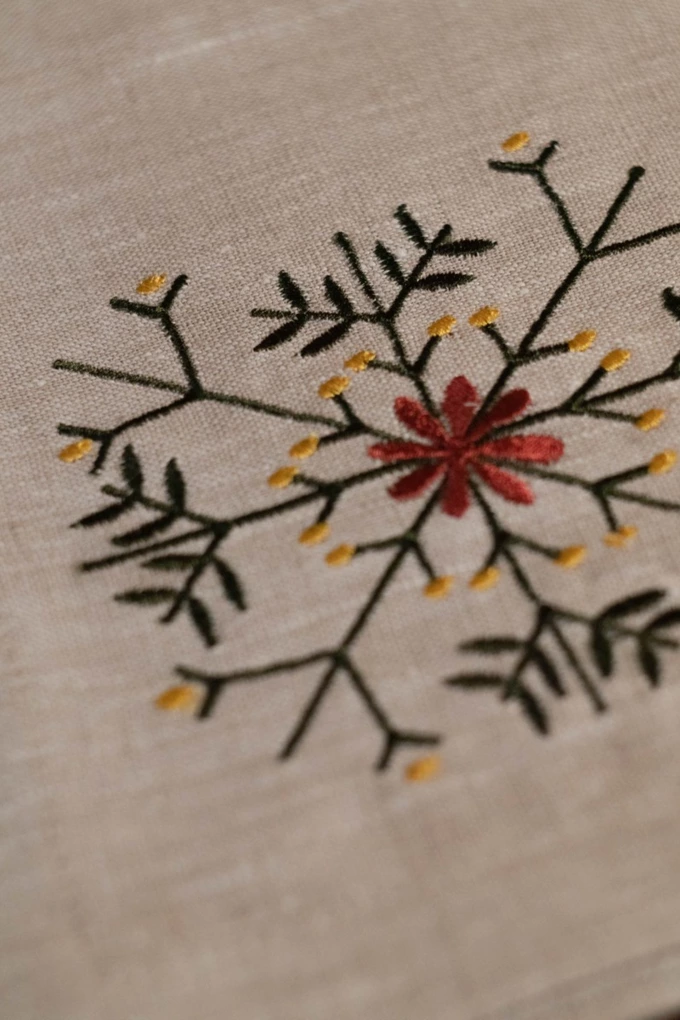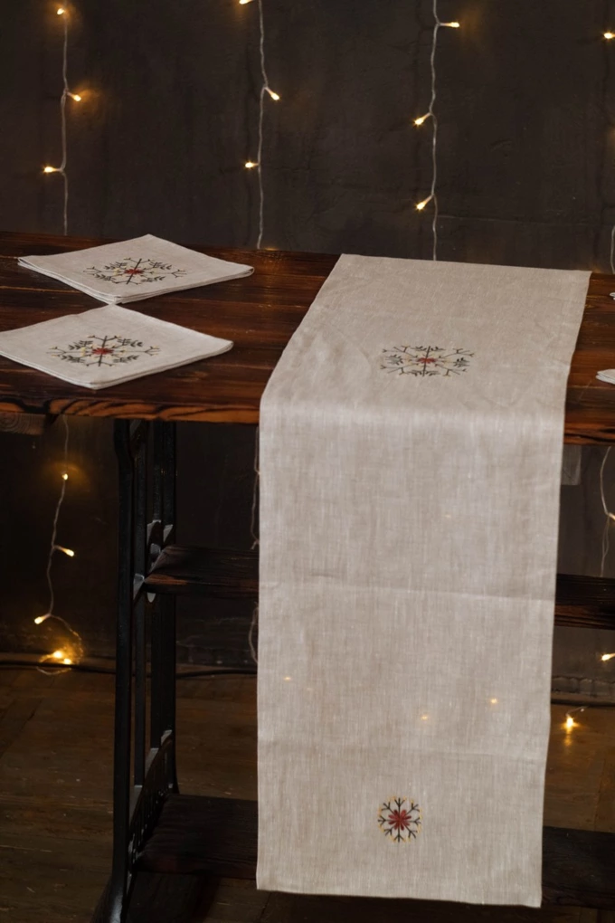 Різдвяна доріжка на стіл із вишивкою «Сніжинки» від Ptashata