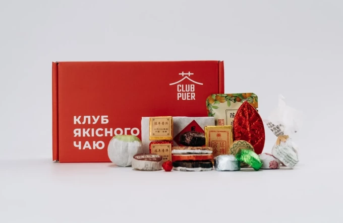 Сет містить 20 порцій пресованого чаю з різних сортів: чорний, зелений, білий, червоний, а також фрукти, рисове листя та квіти. До набору додають інструкцію з описом сортів і технологією приготування.
