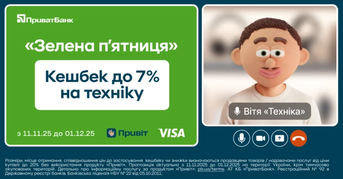Кешбек до 20% та особливі знижки: купуйте вигідно під час «Зеленої пʼятниці» від «ПриватБанку» й Visa