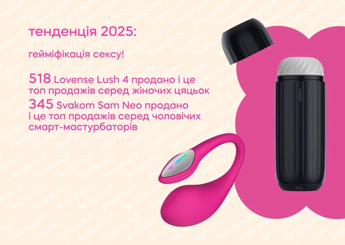 Тенденція 2025 року – гейміфікація, де теж є лідери продажів, наприклад, віброяйце Lush 4 від Lovense.