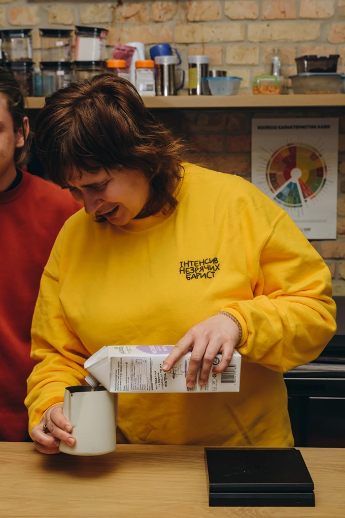 На самому початку навчання тренер Андрій Пустовіт сказав, що ми маємо навчитися готувати капучино – бо це основа. Коли зможемо робити капуч, буде продовження. Хоча насправді я закидувала Андрія запитаннями ще в перший день [сміється], він усе відстоював, що спершу капучино, а потім усе решта.