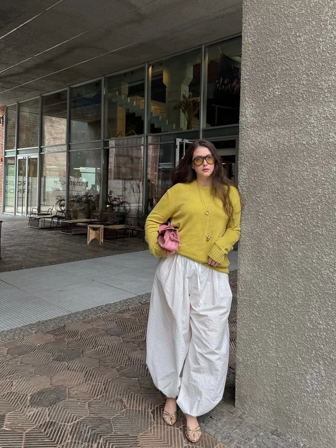 «Найцікавіші образи – ті, у яких є гра обʼємів. Наприклад, від вузького топа до обʼємних штанів, і навпаки: від обʼємного топа до завуженого низу. Якщо ви проаналізуєте образи, які зберігаєте в Pinterest, чи блогерів, на яких ви підписані, то дуже рідко справді стильні люди керуються лише одним силуетом і намагаються постійно показувати свою фігуру стрункою», – розповідає стилістка.