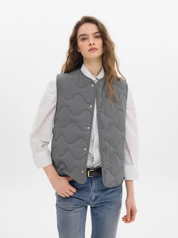 Річ, що вже стала своєрідною класикою бренду. Легкий і теплий водночас – він може слугувати як проміжним шаром між топом і пальтом для додаткового утеплення, так і самостійною позицією, яку можна носити з кежуал-костюмами чи навіть офісними луками. Наприклад, виграшним буде поєднання жилета з мідіспідницею, приталеним лонгслівом і чоботами з подовженим носком.