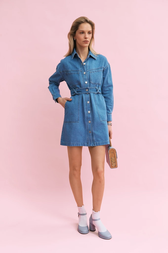 Дроп акцентується на денімі: джинси та бомбери, легкий тренч, а також джинсові сукні. Щільний денім поєднали з м’яким драпірування, а лаконічні силуети – з акцентними принтами.
