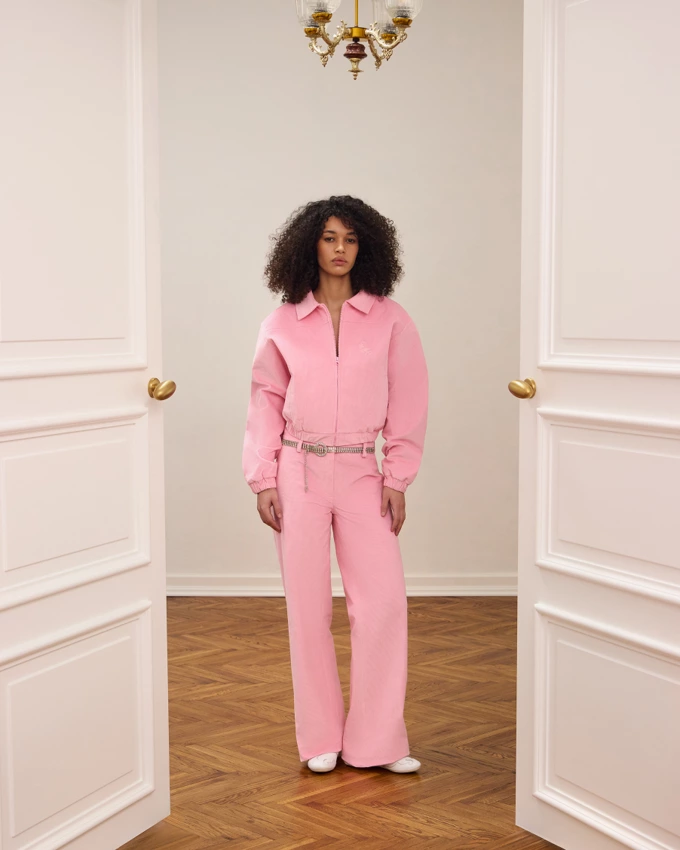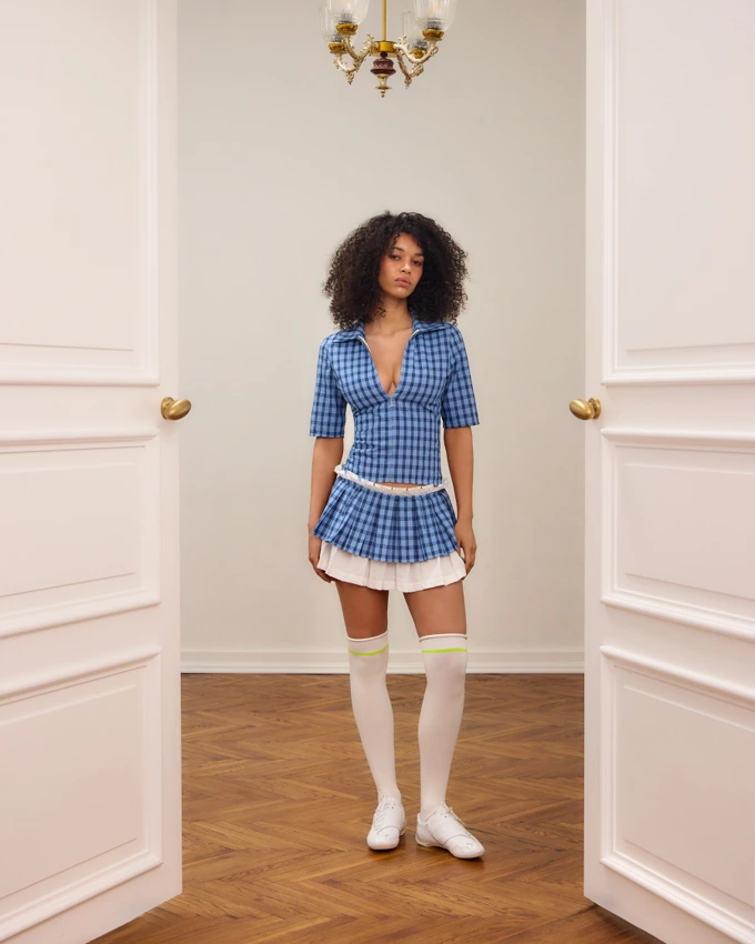 Це новий весняний дроп “Through the Door” у настрої сучасного Y2K і переосмислення естетики 2000-х. Ключові кольори колекції – рожевий, коричневий і navy blue, а головний акцент – клітинка у трьох кольорах: рожевому, синьому та коричневому.