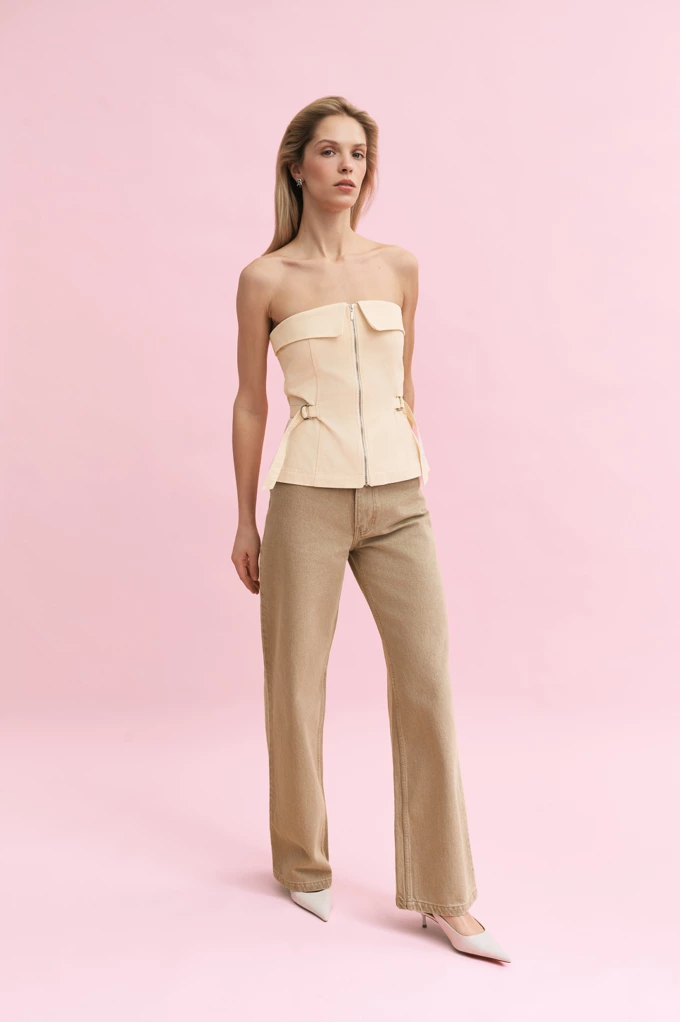 Акцентами дропу стали сатиновий молочний тренч, комплект із топу-бра й асиметричної спідниці з екошкіри, сатинові молочні палаццо, а також напівпрозорий топ у кольорі шампань. Також у колекції є аксесуари: накидки пончо, шарф із бахромою та хустина.
