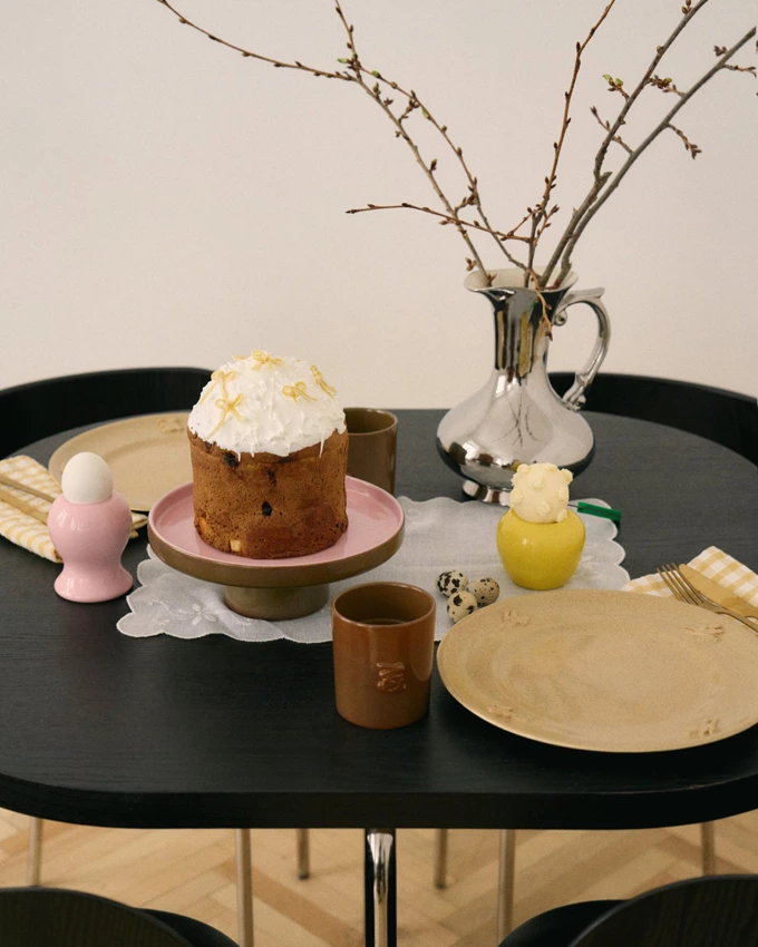 У великодньому дропі в мінімалістичному стилі можна знайти все для святкового кошика: білий і бежевий плетені кошики, свічки у формі яєць із чорними вкрапленнями, лляні хустини з вишитими маками, підставки для крашанок і паску, спечену за класичним рецептом.