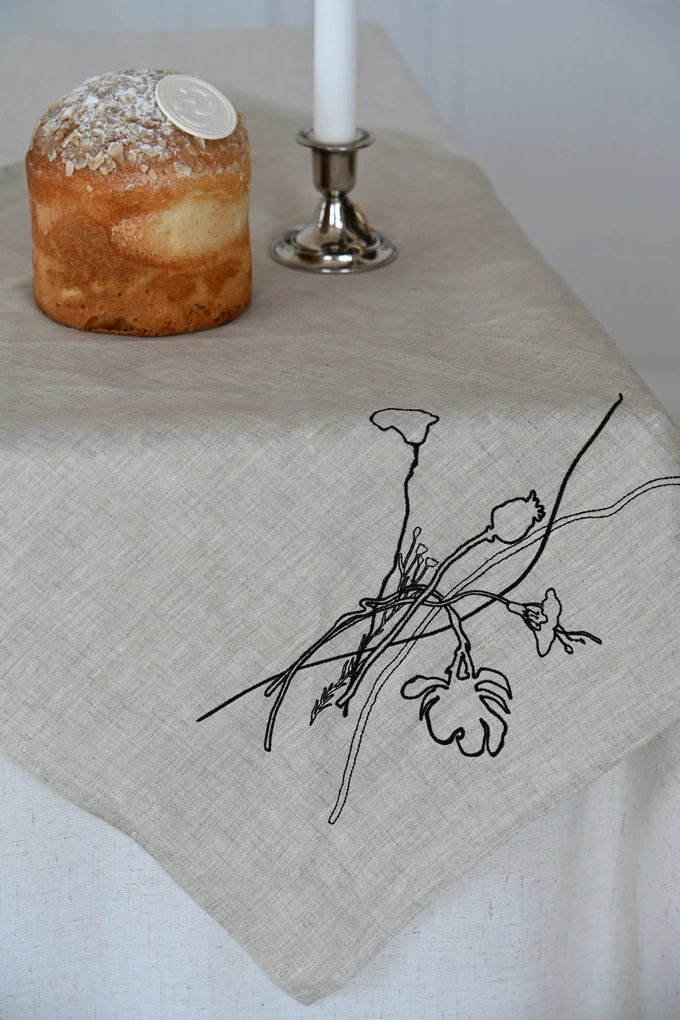 Хустинка бежева з льону з вишивкою «Маки» – 1050 грн