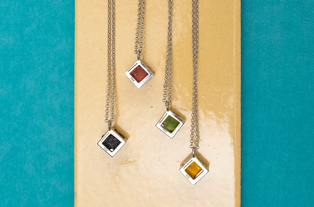 Підвіс Smalta – це шматок автентичного непрозорого скла у срібній оправі на довгому ланцюжку. Лінійка доступна у чотирьох кольорах: жовтому, зеленому, помаранчевому та чорному. Прикраси виготовляли вручну за допомогою лазерного спаювання металу, бо смальта не витримує високих температур, зазначили в команді.