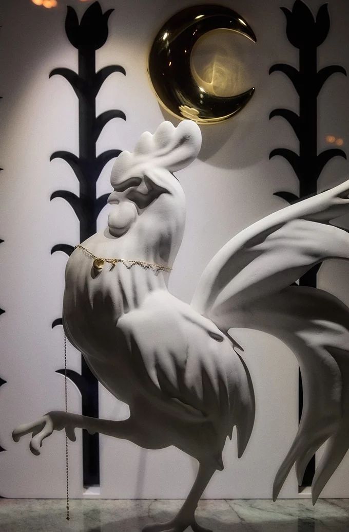 - Яйце-райце – кольє-локет у формі овального яйця, натхненне казкою з Уманського повіту (1869). Усередині можна зберігати талісман – воно відкривається. На верхівці – пташка
