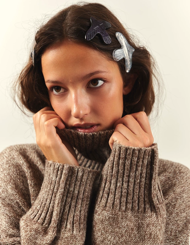 Серед аксесуарів для волосся – в’язана версія резинок Lola cozy та блискучі шпильки у формі пташок Paloma. А серед прикрас – підвіски та каблучки у вигляді коників, підвіски-мандарини, кольє й браслети з великими намистинами, що нагадують фольгу від цукерок чи «зоряний пил». Також є сережки та каблучки Belle зі склом ручної роботи 1950-х років, виготовленим у Німеччині.