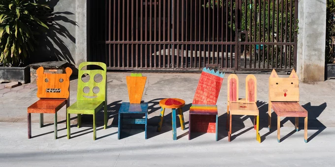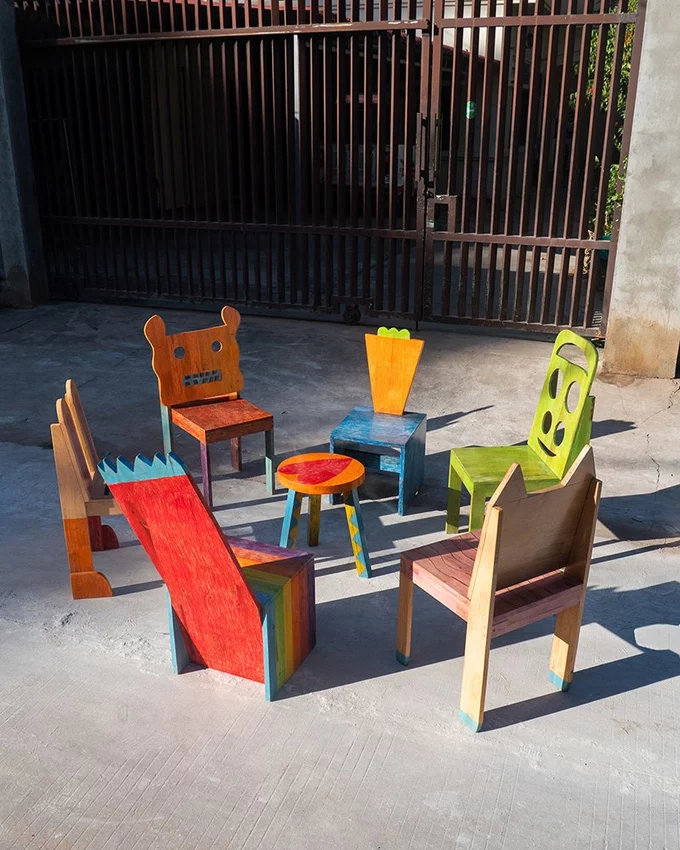 У Камбоджі (держава у Південно-Східній Азії) створили кольорові стільці ручної роботи за дитячими малюнками, пише Designboom.
