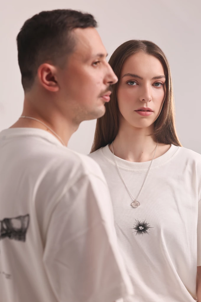 Прикраси схожі на військові жетони – їх виготовили вручну зі срібла. На кожній із них є напис, який можна прочитати лише під час обертання підвіски – це виступає метафорою того, що любов проявляється в дії, пояснюють у команді.