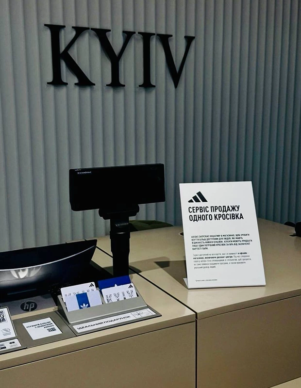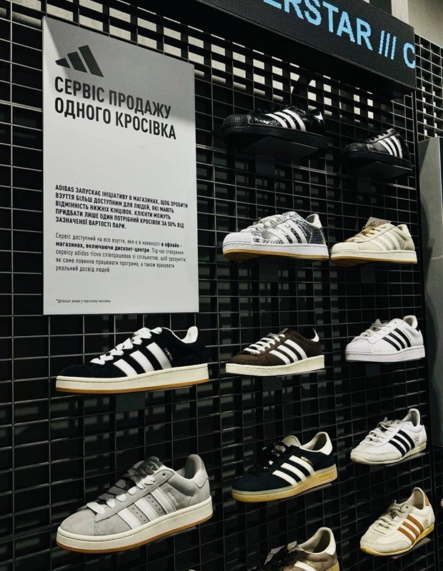 Adidas в Україні почав продавати кросівки по одному за половину вартості пари, повідомили Віледжу в команді.
