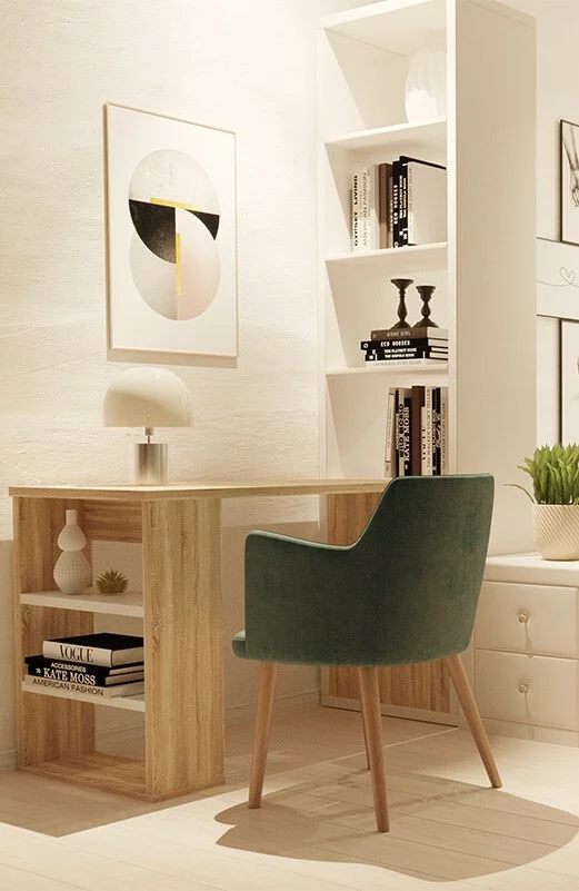 Якщо ваша квартира невелика або ви прихильник мінімалізму, робочий простір важливо організувати максимально компактним і зручним. Для цього обирайте функціональні меблі невеликих розмірів: стільці, столи, шафи. Крісла-стільці «Колін» і «Марті» мають оригінальну конфігурацію, завдяки чому займають небагато простору. А ще вони гармонійно підходять для будь-якого інтер’єру, тому розмістити їх можна на балконі, у спальні та будь-якій іншій кімнаті. Крім того, спеціалісти «Венето» зробили стільці максимально ергономічним для тих, хто довго працює за столом.